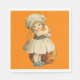 Serviette en papier d'Halloween pour fille en taille de pomme avec une petite fille en robe désuète sculptant une pomme et jetant le poil sur son épaule pour la chance.