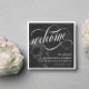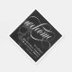 Élégant mariage d'Halloween foncé ou goth serviettes de bienvenue avec l'accueil écrit dans un script tourbillonnant de calligraphie blanche. Ajoutez vos noms et votre date de mariage contre un arrière - plan noir avec un crâne gris. Ajoutez une touche de romance sombre à votre mariage goth avec ces élégantes serviettes de déjeuner ! Ces serviettes noires, blanches et grises présentent un script de calligraphie tourbillonnant et un crâne, parfait pour votre mariage goth unique et élégant. Vos invités apprécieront le design sophistiqué mais sur le thème de ces serviettes.