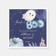 Petit boo Halloween regarder un boo baby shower de table serviettes personnalisées. Un bébé fantôme citrouille mignon chandelles d'aquarelle sur une nuit étoilée sombre arrière - plan pour le baby shower à thème Halloween.