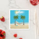 Hamac accroché entre deux palmiers à l'étoile de mer, cocktail et tongs sur la plage de sable avec nuages d'été.