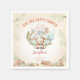 Mignonnes serviettes en papier de camper joyeux pour 1er ou toute petite fille Anniversaire avec le plus mignon petit ours, ballons, van et montagnes en rose et des couleurs réconfortantes. Il capture l'esprit de plaisir au soleil sur votre jardin barbecue, pique-nique, montagne ou toute fête d'anniversaire en plein air :) Personnalisez facilement tout le texte. - Kate Eden Art.
