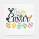 A Colorful Happy Easter Party Napkin With A Cute Script Design Into A Rabbit With Eggs