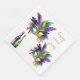 Happy Mardi Gras masques et deux bouteilles apparaissent sur ces serviettes de fête avec typographie lisant un joyeux mardi gras dans un script élégant. Le vert vif, le violet, l'or et l'aquamarine attirent l'oeil et impressionnent vos invités pendant la saison de Mardi Gras.