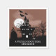 Un grand château noir et des arbres nus contre un ciel nocturne éffrayant avec votre texte en lettrage blanc chic, ces serviettes sont amusantes pour une fête costumée d'Halloween, fête d'anniversaire d'Halloween ou toute occasion, juste changer le libellé. CORRESPONDRE des articles dans notre magasin.