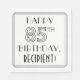 Ce design élégant des années 1920/1930 inspiré art déco design de serviette en papier sur le thème de l'anniversaire a le message "HAPPY 85TH BIRTHDAY", et un nom de destinataire modifiable. Le numéro "85TH" a un aspect géométrique soigné, et il y a aussi une bordure multi-lignes autour du message de voeux d'anniversaire. Des serviettes en papier sur le thème de l'anniversaire comme celle-ci pourraient être amusantes à utiliser lors d'une fête organisée pour quelqu'un qui célèbre son quatre-vingt-cinquième anniversaire. [~Z0000644]