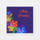 Joyeuses serviettes de Noël aux couleurs tropicales lumineuses pour une fête à thème luau. Modifiez ou supprimez le libellé comme vous le souhaitez. Parfait pour tous les rassemblements de vacances à thème hawaïen, comme une fête de bureau. Des fleurs d'Hibiscus décorent des serviettes violettes foncées avec un texte orange vif de votre choix. Choisissez un style de serviette pour un cocktail ou un dîner.