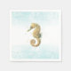 Serviette En Papier Hippocampe sarcelle et or aquarelle plage côtière