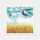 Un troupeau d'hirondelles qui survolent un champ de blé. Des hirondelles survolent le ciel bleu pendant la saison estivale. Sauvage et libre. - Illustration du livre pour un livre photo "Le épouvantail et l'hirondelle" (Ecrit et illustré par Julia Doria). Un cadeau parfait pour les amoureux de la nature et des oiseaux.