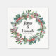 Personnalisé Noël mariage papier serviette de réception, marié récemment, marié moderne marié marié marié vacances d'hiver, Décembre Janvier élégant script classique, fiançailles fête de fiançailles sainte branches verdure, gardienne personnalisé blanc vert rouge, baies botanique rustique ferme grange, vintage aquarelle feuillage sapin de pin