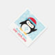 Hiver pays des merveilles "ONEderland" conception de la serviette de fête de premier anniversaire avec un mignon pingouin arctique portant un chapeau de Père Noël et texte personnalisé. L'arrière - plan a un motif de flocons de neige. Couleurs bleu glace, turquoise, rouge et blanche avec des accents noir et gris.