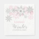 Hiver Onederland Serviettes de flocon de neige en argent et rose.