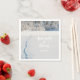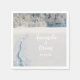 Une serviette pour un mariage d'hiver. Les pistes de ski vers la forêt, un Modèle hivernal des merveilles pour les noms et une date, écriture de style en lettres blanches.