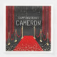 Ces serviettes personnalisées sont décorées dans un style élégant et glamour VIP Hollywood. Une image du tristement célèbre tapis rouge est placée au centre. Un exemple d'événement et de nom sont imprimés entre de luxueux rideaux de théâtre rouge. Vous pouvez personnaliser les serviettes pour inclure votre nom et votre texte personnalisés. Des lumières scintillantes traversent la partie supérieure et des confettis de parties scintillant d'or bordent la partie inférieure.