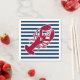 Un homard rouge avec votre monogramme ou texte fixé sur un arrière - plan rayé bleu marine et blanc. Un design parfait pour une plage ou une maison d'été au bord de l'océan, cuire à la langouste sur le rivage, se réunir ou simplement vivre au quotidien. Cliquez sur le logo Colorfulgalshop ci-dessous pour plus de conceptions nautiques amusantes.