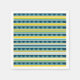 Jaune, bleu, blanc rayures et bleu triangles motif.