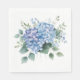 Les serviettes en papier pour fête sont présentées en taille déjeuner blanche avec une impression aquarelle d'un joli mélange floral d'hortensia de couleur bleue.