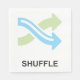 Icône de shuffle avec flèches vertes et bleues et le mot shuffle. Ce design semble vraiment efficace sur ces serviettes en papier