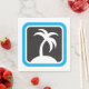 Une icône de palmier avec un arrière - plan noir et un cadre bleu. Ce design semble vraiment efficace sur ces serviettes en papier