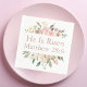 Un élégant bouquet floral de pivoines rose vif et de roses en ivoire encadrent ces adorables serviettes de papier de fête de Pâques. Il est ressuscité est écrit en rose de la pêche pour le verset biblique Matthieu 28:6. Joli autocollant pour un rassemblement d'église ou un brunch de Pâques.