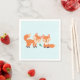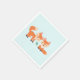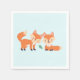 Serviettes en papier avec une illustration graphique de 2 renards oranges à l'air mignon et heureux. Arrière - plan bleu clair.