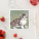 Serviettes avec chaton rayé. Des rayures noires traversent la fourrure d’un chaton blanc. Une fleur blanche décore un panier dans un champ herbeux. Un cadeau fantastique pour les amoureux de les chats et les amateurs d'art victorien !
