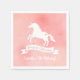 Serviettes de fête d'anniversaire élégantes avec silhouette contour d'une licorne bondissante avec un petit coeur sur son flanc. Des étincelles magiques entourent la licorne. La bannière avec le texte non modifiable dit "fête magique". Palette de couleur de blanc sur un arrière - plan de texture d'aquarelle rose rose rose. Personnalisez le message pour la fille d'anniversaire !