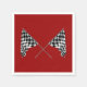 Paquet de 50 serviettes de cocktail en papier blanc avec une image croisée à damiers drapeaux de course sur rouge. Voir la serviette en tissu assortie, serviette de cuisine, set de table en tissu, set de table en papier et dessous de verre. Voir l’ensemble de la collection de serviettes de la Fête des Pères dans le FOOD/BEV | Section Linge.