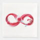Infinity symbole of continuous stream of red pouring into glass glass glass on white background.