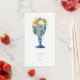 Serviette mariage de tournesol fleuri et en verre à tige. Magnifique. Texte bleu cobalt. Belle police.