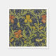 Ce dessin est l'impression d'un dessin de tissu créé par l'artiste britannique William Morris (1834-1896), associé au Mouvement des arts et de l'artisanat. Il représente des fleurs d'iris bleu et orange dans un motif symétrique élégant. La fleur porte le nom d'Iris, déesse grecque de l'arc-en-ciel et messager des dieux Olympiens, transportant des messages vers l'humanité. Les feuilles et les tiges des plantes de l'iris sont représentés en bleu et vert. Il y a quelques oiseaux jaunes perchés sur certains feuillage des plantes. Le motif original a été conçu par William Morris en 1887.