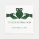 Ces serviettes en papier mariage ont une illustration simple dessinée à la main d'un coeur de claddagh irlandais que l'on trouve traditionnellement sur les anneaux de claddagh. Le graphique est dans un chasseur foncé ou un jeu de vert de forêt contre un arrière - plan blanc