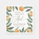Add a warm, Mediterranean touch to your celebration with this elegant personalized wedding napkin. The design features hand painted watercolor oranges and greenery - a fresh, natural look perfect for Tuscan, garden, or summer weddings. Customized with the couple’s names, date, and location. These napkins are ideal for wedding receptions, cocktail hours, or rehearsal dinners. The soft watercolor style complements citrus or botanical wedding decor, creating a cohesive and romantic table setting your guests will remember.