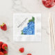 Jardin romantique, hydrangée bleue serviettes en papier personnalisées. Utilisez ce joli design floral bleu vif pour des douches nuptiales, des réceptions de mariage, des dîners de répétition ou tout événement. Customisez deux lignes de texte. Design à la ligne sur des serviettes inventées avec des noms et date mariage en texte noir.