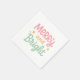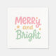 Des serviettes en papier de Noël modernes avec un design mignon et amusant avec "Joyeux et brillant" dans du papier décontracté rose pastel et vert joyeux.