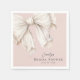Mignon et féminin, ce design de serviette pour Baby Shower Mariage a un grand nœud blanc ivoire aquarelle sur un fond rose tendre. Le nœud est incliné d'un côté, ajoutant une touche de charme. Un modèle de texte est inclus pour personnaliser avec le nom de l'invité d'honneur et la date de la douche.