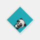 Une illustration mignonne et adorable d'un ours en panda noir et blanc assis et regardant heureux, amical et aimable. Arrière - plan bleu turquoise.
