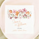 L'amour est en fleurs ! Ajoutez une touche d'élégance florale bohème à votre célébration avec nos serviettes de cocktail pour la douche de la mariée "L'amour est en fleurs". Ces serviettes charmantes présentent une délicieuse composition d'illustrations de fleurs peintes à la main dans des teintes douces de rose, pêche et orange, créant un design fantaisiste et romantique. Parfaites pour ajouter une touche personnelle à votre douche de la mariée, ces serviettes sont un ajout charmant à la décoration de votre événement. Les couleurs pastel douces et la typographie élégante font de ces serviettes un souvenir mémorable pour vos invités.