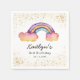 Une serviette en papier pour la fête d'anniversaire de la fille Whimsical avec un arc-en-ciel peint à l'aquarelle. Il y a aussi de la parties scintillant en faux or autour des bords. Customisez ce produit en ajoutant le nom de votre enfant.
