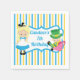 Des serviettes de fête pour un enfant, le Cute Alice in Wonderland, réservent un anniversaire à thème. La petite fille Alice dans sa robe bleue et le chapeau Mad s'assoient sur une jolie bande jaune bleue. Customisez ce décor fantaisiste de fête avec votre propre texte.