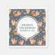 Joyeuses serviettes en papier d'anniversaire avec un motif fait avec des renards orange mignons et heureux. Arrière - plan vert foncé. Petits champignons et feuilles parsemés. Un cercle blanc superposé avec votre texte personnalisé à l'intérieur.