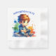 Serviettes de fête d'anniversaire. Joli petit garçon anime jouant à des jeux vidéo avec un arrière - plan de peinture bleu, orange et vert éclaboussant fait dans un aquarelle d'air illustration.