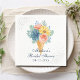 Serviettes en papier pour fête de mariage avec macaron de succulente florale présente des fleurs aquarelles élégantes et des macarons dans un cône de glace en corail doux, sarcelle, bleu et jaune sur fond blanc. Personnalisez en modifiant le texte dans les zones de texte. Conçu pour vous par ©Evco Studio www.zazzle.com/store/evcostudio