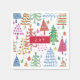 Cette serviette en papier de vacances mignonne et joyeuse égayera vos réunions de vacances. Ce design festif présente un motif fantaisiste d'arbres de Noël en rouge, vert, rose et bleu avec le mot "Joy" sur un carré rouge au centre. Illustration de l'artiste mondialement connu Tim Coffey