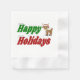 Serviettes en papier avec des vacances heureuses en lettres vert et rouge 3D et un renne. Serviettes disponibles en plusieurs couleurs et styles.