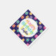 Filles Joyeux Anniversaire Motif de Chouette Bleue Personnalisé avec le nom et l'âge des serviettes en papier de fête. Arrière - plan bleu nuit foncé avec des hiboux multicolores et des coeurs design. Chouettes turquoises, bleues, vertes, roses, violettes, oranges, jaunes et rouges dans un motif amusant. Le cercle blanc central montre l'âge en jaune clair au centre. Happy est écrit en rose, Anniversaire en turquoise avec le nom personnalisé en bleu nuit foncé. Animaux personnalisés amusants, fournitures de fête pour enfants, adolescents et ados. Adorable baroudeur motif.
