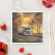 Ces serviettes d'anniversaire à l'atmosphère sont équipées d'un camion-remorque tracteur se déplaçant sur une route de campagne.