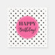 Joyeuses serviettes d'anniversaire pour la fête d'anniversaire en motif pois rose noir et blanc.