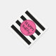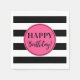 Joyeuses serviettes de fête d'anniversaire en motif rose noir et blanc rayures.