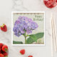 Ces serviettes de fête d'anniversaire ont une jolie fleur d'hydrangée avec du texte qui peut être changé ou éliminé pour répondre à vos besoins.