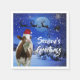 Cette jolie vache de ferme laitière dans son chapeau de Santa vous souhaite un Joyeux Noël ou est-ce un Joyeux Noël? Le paysage neigeux bleu fait voler Père Noël et ses rennes en arrière - plan pour compléter la scène de vacances. Juste un petit humour pour rendre votre saison brillante et l'espoir que vous avez aussi une Bonne Année Moo.